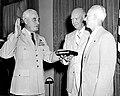 Air Force General Nathan F. Twining took the oath of office as Chairman of the Joint Chiefs of Staff in 1957.
