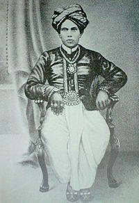 In the early nineteenth century, the Nadars were a community mostly engaged in the palmyra industry, including the production of toddy.[16] However, there were a few subsects comprising wealthy landlords and money lenders.[17][18] At this time, the majority of Nadars lived south of the Thamirabarani River, and formed 80 - 90 per cent of the population between there and Cape Comorin.[19] Although numerically dominant in the area, the Nadars had a minimal interaction with other communities and they were themselves divided by their various endogamous subcastes, and thus lacked communal cohesion.[20] While the majority of the Nadar population in the south of Thamirabarani river were poor, landless palmyra climbers, there also existed a small endogamous sub group of aristocratic Nadars, known as the Nelamaikarrars or Nadans, who owned vast tracts of land.[17] These Nadans either held their position directly under Nayak rulers in the Tiruchendur area or as petty lords under the Palaiyakkarar. They commanded high respect among the population, including from groups such as the Nadar climbers, the minority Vellalars and the Brahmins. Nadan men rode horses and their women rode in covered palanquins.[21]
