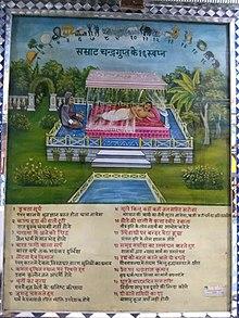 The 12th-century Digambara text Parishishtaparvan by Hemachandra is the main and earliest Jain source of the complete legend of Chandragupta. It was written nearly 1,400 years after Chandragupta's death. In Canto 8, verses 170 to 469, it describes the legend of Chandragupta and Chanakya's influence on him.[21][25] Other Digambara Jain sources state he moved to Karnataka after renouncing his kingdom and performed Sallekhana – the Jain religious ritual of peacefully welcoming death by fasting.[26][27] The earliest mention of Chandragupta's ritual death is found in Harisena's Brhatkathakosa, a Sanskrit text of stories about Digambara Jains. The Brhatkathakosa describes the legend of Bhadrabahu and mentions Chandragupta in its 131st story.[28] However, the story makes no mention of the Maurya empire, and mentions that his disciple Chandragupta lived in and migrated from Ujjain – a kingdom (northwest Madhya Pradesh) about a thousand kilometers west of the Magadha and Patliputra (central Bihar). This has led to the proposal that Harisena's Chandragupta may be a later era, different person.[28][2][29]