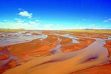 The Tuotuo River (沱沱河; Tuótuó Hé; 'Tearful River')[24] is the official headstream of the Yangtze, and flows 358 km (222 mi) from the glaciers of the Gar Kangri and the Geladandong Massifs in the Tanggula Mountains of southwestern Qinghai to the confluence with the Dangqu River to form the Tongtian River. [26] In Mongolian, this section of the river known as the Ulaan Mörön or the "Red River."