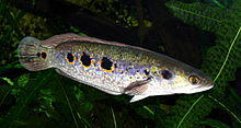 Channa is a genus of predatory fish in the family Channidae, commonly known as snakehead, native to freshwater habitats in Asia. This genus contains about 50 scientifically described species. The genus has a wide natural distribution extending from Iraq in the west, to Indonesia and China in the east, and parts of Siberia in the Far East. A particularly high richness of species exists in Myanmar (Burma) and northeastern India, and many Channa species live nowhere else. In contrast, a few widespread species have been introduced to several regions outside their natural range where they often become invasive. The large and medium-sized Channa species are among the most common staple food fish in several Asian countries and they are extensively cultured.[1] Apart from their importance as a food fish, snakeheads are consumed in some regions as a traditional medicine for wound healing and reducing post-operative pain and discomfort,[1] and collected for the international aquarium pet trade.[2]