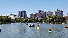 Chaoyang is home to the majority of Beijing's many foreign embassies, the well-known Sanlitun bar street, as well as Beijing's growing central business district. The Olympic Green, built for the 2008 Summer Olympics, is also in Chaoyang. Chaoyang extends west to Chaoyangmen on the eastern 2nd Ring Road, and nearly as far east as the Ximazhuang toll station on the Jingtong Expressway. Within the urban area of Beijing, it occupies 475 square kilometres (183 sq mi), making it the central city's largest district, with Haidian second. As of 2005, Chaoyang had a total population of 3,642,000,[1] making it the most populous district in Beijing. The district has jurisdiction over 22 subdistrict offices and 20 area offices.[2] Chaoyang is also home to Silk Street, and many other market areas, shopping malls, and restaurant strips.