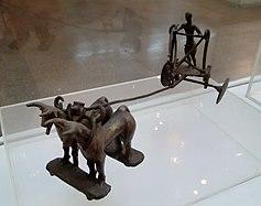 The only intact Etruscan chariot dates to c. 530 BC and was uncovered as part of a chariot burial at Monteleone di Spoleto. Currently in the collection of the Metropolitan Museum of Art,[37] it is decorated with bronze plates decorated with detailed low-relief scenes, commonly interpreted as depicting episodes from the life of Achilles.[38]