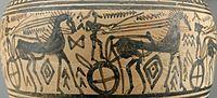 Procession of chariots on a Late Geometric amphora from Athens (ca. 720–700 BC).