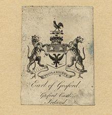He was succeeded by his son, the second Viscount. He sat in the Irish Parliament as the representative for Old Leighlin from 1783 to 1790. In 1806 he was created Earl of Gosford in the Peerage of Ireland.[4] Since then, heirs apparent to the earldom have traditionally used the invented courtesy title of Viscount Acheson. His son, the second Earl, sat on the Whig benches in the House of Lords as an Irish Representative Peer from 1811 to 1849 and served under Lord Melbourne as Captain of the Yeomen of the Guard in 1834 and 1835. Between 1835 and 1838 he was Governor General of British North America. Lord Gosford married Mary, daughter of Robert Sparrow of Worlingham Hall in Suffolk. In 1835 he was created Baron Worlingham, of Beccles in the County of Suffolk,[5] in the Peerage of the United Kingdom, which gave him and his descendants an automatic seat in the House of Lords.