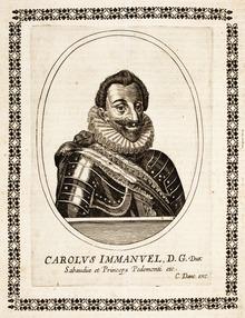 Charles Emmanuel I (Italian: Carlo Emanuele di Savoia; 12 January 1562 – 26 July 1630), known as the Great, was the Duke of Savoy from 1580 to 1630. He was nicknamed Testa d'feu ("the Hot-Headed") for his rashness and military aggression.