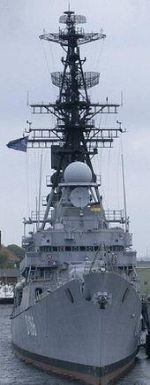 The Lütjens-class destroyer was a modification of the Charles F. Adams class for the Bundesmarine (the Navy of West Germany). It differed from the Charles F. Adams class in the layout of the crew accommodations, the location of the bow sonar, a second large aerial mast and different funnels.
