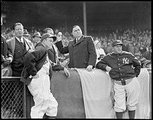 Hurley's entry into politics was in 1919, when he won election to the Cambridge school committee, on which he served until 1931. In 1930 he ran as a Democrat for the position of Massachusetts State Treasurer, winning three consecutive two-year terms.[2] Each year he defeated his Republican opponent by wide margins, leading to calls for him to stand for governor.[1] Governor Joseph B. Ely appointed Hurley to the state administration's committee which distributed federal New Deal relief money, and was aligned with the Democratic Party faction opposed to James Michael Curley, the powerful Mayor of Boston. This faction was generally opposed to the influx of federal money,[3] and the party infighting meant that Hurley minimized the number of Curley supporters the committee engaged,[4] and that the distribution of relief aid was hampered by the ongoing dispute.[5] In 1936 he won the Democratic Party nomination for governor (Curley, the incumbent, was seeking a Senate seat), and then won the general election, defeating Republican John W. Haigis.
