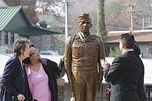 A bronze statue of him was unveiled at the Charles George VA Medical Center (CGVAMC) in Asheville on Sept. 24, 2016. “What a privilege is it to honor a true American hero in such a memorable way,” said Cynthia Breyfogle, CGVAMC director, said at the event. “I was both thrilled and humbled when I first heard that we would receive this statue. The legacy of Charles George was, and still is, an inspiration and influence beyond his local community. His courage and example join those of other brave men and women, past and present, who have answered the call when their country needed them.” The statue was sculpted by James Spratt, a U.S. Navy veteran, who passed away on the same day it was unveiled. [2]