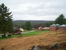 "The consociate family", as Fruitlands residents referred to themselves,[5] wished to achieve complete freedom by separating entirely from the world economy.[1] To accomplish this, they refrained from trade, allowed no personal property, and did not use hired labor. They intended to grow all their own food; they also eliminated animal products from their diets entirely. Referring to their vegan diet, Lane wrote, "Neither coffee, tea, molasses, nor rice tempts us beyond the bounds of indigenous production... No animal substances neither flesh, butter, cheese, eggs, nor milk pollute our tables, nor corrupt our bodies." Diet was usually fruit and water; many vegetables—including carrots, beets, and potatoes—were forbidden because they showed a lower nature by growing downward.[1] Lane and Alcott also asked participants to wear only linen clothes and canvas shoes; cotton fabric was forbidden because it exploited slave labor and wool was banned because it came from sheep.[1] As they believed that animals should not be exploited, Fruitlands would not use animals though, eventually, they allowed an ox and a cow.[1]