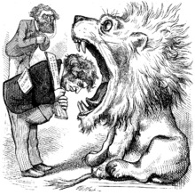 Sumner changed his political party several times as anti-slavery coalitions rose and fell in the 1830s and 1840s before coalescing in the 1850s as the Republican Party, the affiliation with which he became best known. He devoted his enormous energies to the destruction of what Republicans called the Slave Power, the influence over the federal government by Southern slave owners who sought the continuation and expansion of slavery.[1] On May 22, 1856, South Carolina Democratic congressman Preston Brooks nearly killed Sumner with a cane on the Senate floor after Sumner delivered an anti-slavery speech, "The Crime Against Kansas."[2] In the speech, Sumner characterized the attacker's first cousin once removed,[3][4] South Carolina Senator Andrew Butler, as a pimp for slavery.[5] The widely reported episode left Sumner severely injured and both men famous. It was several years before he could return to the Senate; Massachusetts not only did not replace him, it re-elected him, leaving his empty desk in the Senate as a reminder of the incident. The episode contributed significantly to the polarization of the country leading up to the Civil War.