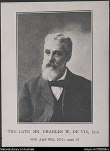 - ^ a b c d e "de Vis, Charles Walter (1829 - 1915)" — Australian Dictionary of Biography