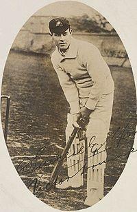 Charles George Macartney (27 June 1886 – 9 September 1958) was an Australian cricketer who played in 35 Test matches between 1907 and 1926. He was known as "The Governor-General" in reference to his authoritative batting style and his flamboyant strokeplay, which drew comparisons with his close friend and role model Victor Trumper, regarded as one of the most elegant batsmen in cricketing history. Sir Donald Bradman—generally regarded as the greatest batsman in history—cited Macartney's dynamic batting as an inspiration in his cricket career.