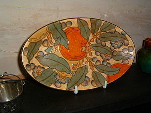Rhead is noted for her cheerful tubelined designs. Her style was more traditional than that of Clarice Cliff and Susie Cooper, her contemporaries. Rhead's ware was popular in her lifetime, and continues to fetch moderate prices at auction.[2] Jessie Tait, another prolific ceramic designer, worked for Charlotte Rhead.