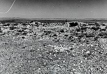 Christopher Giles (no relation of Ernest), a surveyor in Goyder's 1868 expedition and with Charles Todd in 1870, was involved with the surveying of the telegraph line with younger brother Alfred.[8][9] In 1872, a telegraph repeater, post office and general store were built at Charlotte Waters,[10] and Christopher Giles served at the repeater station until 1876.[9] The station was nicknamed Bleak House by the telegraph operators, as the area was a desolate gibber plain, with no bushes or trees.[11]