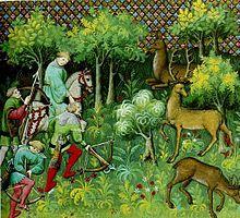 "Forest"[4] to the Normans meant an enclosed area where the monarch (or sometimes another aristocrat) had exclusive rights to animals of the chase and the greenery ("vert") on which they fed.[5] It did not consist only of trees, but included large areas of commons such as heathland, grassland and wetlands, productive of food, grazing and other resources.[6] Lands became more and more restricted as King Richard and King John designated greater and greater areas as royal forest. At its widest extent, royal forest covered about one-third of the land of southern England.[5] Thus it became an increasing hardship on the common people to try to farm, forage, and otherwise use the land they lived on.