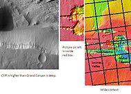 Cliff in Candor Chasma Plateau, as seen by THEMIS. Click on image to see relationship with other features in Coprates quadrangle.