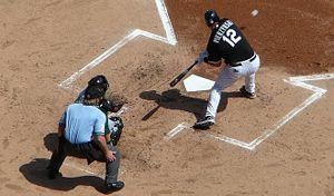 A checked swing is a type of motion in baseball made by a batter. A checked swing occurs when a batter starts to swing the bat at the ball, but stops the swing in order to allow the ball to pass without hitting it. If the swing was indeed checked, so that there was no swing, and if the bat did not touch the ball and it did not go through the strike zone, the pitch counts as a ball; but in that circumstance if the swing was not checked, so that a swing occurred, then the pitch counts as a strike.