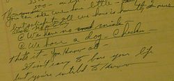 On Monday morning, Nixon flew to Los Angeles, making notes for his speech aboard the plane. He jotted down the line he had said in Eugene regarding his wife's coat. He made notes concerning the family finances, upsetting Pat Nixon, who asked why people had to know their financial details. The senator responded that people in politics live in a fishbowl. He recalled the Fala speech, in which Franklin Roosevelt had sarcastically responded to Republican claims he had sent a destroyer to fetch his dog, Fala, and remembered the dog his children had recently received:[34] A Texas traveling salesman named Lou Carrol had read a report that Pat Nixon said her children Tricia and Julie "longed" for a dog, and his own dog, an American Cocker Spaniel, had just had a litter. After a telegram exchange, he crated the puppy and shipped it by rail to the Nixons, and six-year-old Tricia Nixon named the dog "Checkers".[35] Nixon decided that including the anecdote evoking FDR would needle his enemies and delight his friends.[34]