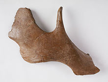 This jugal bone from an Edmontosaurus is over three feet (1 meter) long