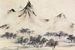 Chén Chún (Chinese: 陳淳; 1483–1544) was a Ming Dynasty artist. Born into a wealthy family of scholar-officials in Suzhou, he learned calligraphy from Wen Zhengming, one of the Four Masters of the Ming dynasty. Chén Chún later broke with Wen to favor a more freestyle method of ink wash painting. He was associated with the Wu School of literary painting. Mi Fu of the Song Dynasty had a strong influence on his work. Chén executed many landscapes, but to a degree is noted as a "Bird-and-flower" painter.