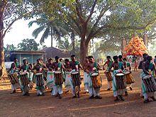 The Chenda is mainly played in Hindu temple festivals and as an accompaniment in the religious art forms of Kerala. The chenda is used as an accompaniment for Kathakali, Koodiyattam, Kannyar Kali, Theyyam and among many forms of dances and rituals in Kerala. It is also played in a dance-drama called Yakshagana (Tenku Thittu) which is popular in Tulu Nadu in Karnataka. There is a variant of this instrument used in northern school of Yakshagana called Chande. It is traditionally considered to be an Asura Vadyam ((demonic instrument)) which means it cannot go in harmony. Chenda is an inevitable musical instrument in all form of cultural activities in Kerala.