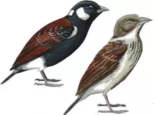 The chestnut-backed sparrow-lark (Eremopterix leucotis) is a passerine bird which is a resident breeder in Africa south of the Sahara Desert.