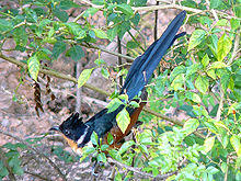 The chestnut-winged cuckoo or red-winged crested cuckoo (Clamator coromandus) is a cuckoo found in Southeast Asia and parts of South Asia. It has dark glossy upperparts, a black head with long crest chestnut wings, a long graduated glossy black tail, rufous throat dusky underside and a narrow white nuchal half collar. They breed along the Himalayas and migrate south in winter to Sri Lanka, southern India and tropical Southeast Asia including parts of Indonesia, Thailand and the Philippines. It is about 47 cm long.