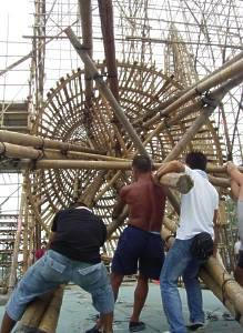 The three "Bun Mountains" are still placed in the area in front of Pak Tai Temple, and are constructed using the traditional fixation method — bamboo scaffolding.