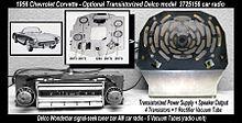 The 1956 Corvette featured a new body, with real glass roll up windows and a more substantial convertible top. The straight-6 engine was dropped, leaving only the 265 cu in (4.3 L) V8. Power ranged from 210 to 240 hp (157 to 179 kW).[23] The standard transmission remained the 3-speed manual, with an optional Powerglide automatic. Other options included power assisted convertible top, a removable hardtop, power windows,[18] and a signal-seeking partially transistorized Delco car radio.[24][25] A high-performance camshaft was also available (as RPO 449) with the 240 hp engine.