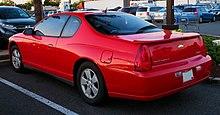 The Chevrolet Monte Carlo is a two-door coupe that was manufactured and marketed by the Chevrolet division of General Motors. Deriving its name from the namesake Monegasque city, the Monte Carlo was marketed as the first personal luxury car of the Chevrolet brand. Introduced for the 1970 model year, the model line was produced across six generations through the 2007 model year, with a hiatus from 1989-1994. The Monte Carlo was a closely aligned variant of the Pontiac Grand Prix through its entire production.