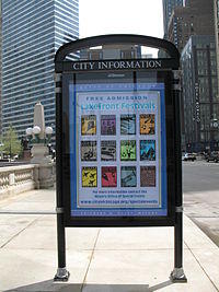 Since those early beginnings the festival has risen to a status that the City of Chicago has billed as the world's largest free concert of its kind, and the largest of the city's music festivals.[7] For many years through 2016, the festival's "Route 66 Roadhouse" side stage was located a few yards north of historic old U.S. Route 66 (Jackson Boulevard, with traffic closed off for the festival), and a block west of Route 66's former eastern terminus at US 41 Lake Shore Drive.[8]
