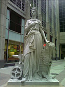 The 1885 allegorical architectural sculptures of 35 ft (11 m) Industry and Agriculture, two figures of a four-piece set, were removed from the original building and now stand in a nearby pedestrian plaza.[9]