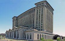In Dearborn, US 12 intersects US 24 (Telegraph Road) at an interchange on the western side of the city, and M-39 (Southfield Freeway) on the eastern side near the River Rouge crossing and Greenfield Village. On the Dearborn–Detroit city border, US 12 pass through a complex interchange with I-94 (Edsel Ford Freeway) and M-153 (Ford Road/Wyoming Avenue). Michigan Avenue continues northeasterly parallel to I-94 for a short distance before it turns due east.[4][7] Once it makes the direction change, it forms the 0 Mile of Detroit's Mile Road System.[8] US 12 continues through residential areas on Detroit's West Side, passing through the interchange that connects I-75 with I-96's eastern terminus near the Ambassador Bridge. The highway runs through Corktown and beside the site of the former Tiger Stadium at the corner of Michigan and Trumbull. East of the former stadium, US 12 crosses M-10 (Lodge Freeway) near the MGM Grand Detroit casino. East of M-10, Michigan Avenue enters Downtown Detroit. At the corner of Michigan and Cass, US 12 ends while Michigan Avenue continues several blocks further to terminate at Campus Martius Park at Woodward Avenue.[4][7]