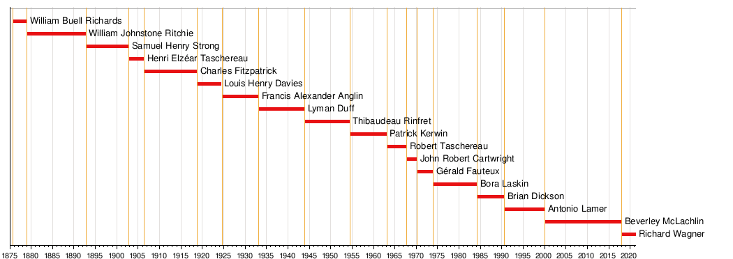 - ^ a b "Current and Former Chief Justices". Ottawa, Ontario: Supreme Court of Canada. Retrieved November 12, 2018.