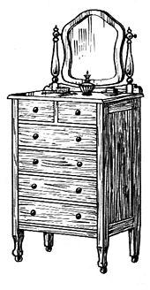 In North America, a chiffonier is quite different. There it refers to a tall, narrow and elegant chest of drawers, frequently with a mirror attached on top.[2] It is also one half of the American portmanteau piece of furniture called a chifforobe.