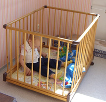 A playpen is another device that is commonly used as a form of childproofing, by restricting the movement of a child while resting, playing or bottle feeding, requiring a somewhat lower level of supervision while in use. Many playpens are portable, making them an alternative when the parent and child are visiting a home that has not been "childproofed".