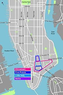 - ^ Google (November 22, 2014). "Chinatown, New York, NY" (Map). Google Maps. Google. Retrieved November 22, 2014.