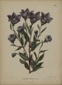 Growing to 60 cm (24 in) tall by 30 cm (12 in) wide, it is an herbaceous perennial with dark green leaves and blue flowers in late summer. A notable feature of the plant is the flower bud, which swells like a balloon before fully opening.[4] The five petals are fused together into a bell shape at the base, like its relatives, the campanulas.