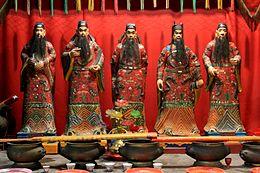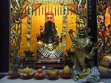 Chinese folk religion, also known as popular religion, is a polyphyletic term used to describe the diversity of practices in areas generally termed "religion", of persons of Chinese heritage, including the Chinese diaspora. Vivienne Wee described it as "an empty bowl, which can variously be filled with the contents of institutionalized religions such as Buddhism, Taoism, Confucianism, the Chinese syncretic religions."[1] This may include the veneration of forces of nature and ancestors, exorcism of demonic forces, and a belief in the rational order of nature, balance in the universe and reality that can be influenced by human beings and their rulers, as well as spirits and gods.[2] Worship is devoted to a multiplicity of Gods and Immortals (Chinese: 神; pinyin: shén ), who can be Deities of phenomena, of human behaviour, or progenitors of lineages. Stories regarding some of these gods are collected into the body of Chinese mythology. By the 11th century (Song period), these practices had been blended with Buddhist ideas of karma (one's own doing) and rebirth, and Taoist teachings about hierarchies of Gods, to form the popular religious system which has lasted in many ways until the present day.[3]
