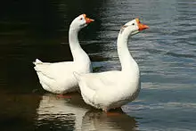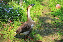 Chinese geese appear in two varieties: a brown, similar to the wild swan goose, and white. While many domestic Chinese geese have a similar body type to other breeds, the breed standards as defined in the American Poultry Association's Standard of Perfection and other sources call for a slimmer, taller fowl.[1]