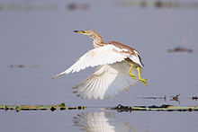 The Chinese pond heron (Ardeola bacchus) is an East Asian freshwater bird of the heron family, (Ardeidae).