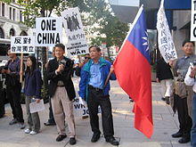 Most Taiwanese (ROC) people oppose joining China (PRC) for various reasons, including fears of the loss of Taiwan (ROC)'s democracy, human rights, and Taiwanese nationalism. Opponents either favour maintaining the status quo of the Republic of China administrating Taiwan or the pursuit of Taiwan independence.[1] The ROC Constitution states that its territory includes the mainland,[2] but the official policy of the ROC government is dependent on which coalition is currently in power. The position of the Pan-Blue Coalition, which comprises the Kuomintang (KMT), the People First Party and the New Party is to eventually incorporate the mainland into the ROC, while the position of Pan-Green Coalition, composed of the Democratic Progressive Party (DPP) and the Taiwan Solidarity Union, is to pursue Taiwan independence.[3]