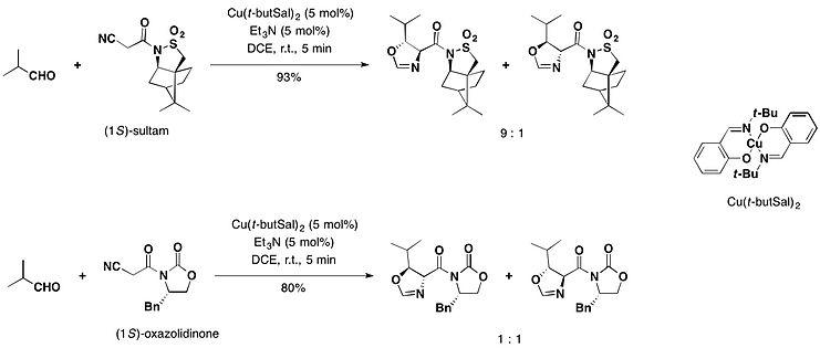 - ^ Evans, D. A.; Chapman, K. T.; Bisaha, J. (1984). "New Asymmetric Diels-Alder Cycloaddition Reactions. Chiral α,β-Unsaturated Carboximides as Practical Chiral Acrylate and Crotonate Dienophile Synthons". J. Am. Chem. Soc. 106 (15): 4261–4263. doi:10.1021/ja00327a031.