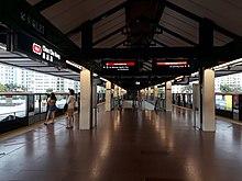 The contract for the construction of the Bukit Panjang station was awarded to a Taiwanese-Singapore joint venture (RSEA International-Hock Lian Seng) at a contract sum of S$99.8 million in January 1986. The contract also includes the construction of the Jurong, Bukit Batok and Bukit Gombak stations and the 6-kilometre (3.7 mi) viaducts.[4] Construction began on 15 February 1986. The MRT station was opened on 10 March 1990 and was the terminus of the Branch line.[5] With the opening of the North South line Woodlands Extension on 10 February 1996, the branch line was incorporated into the North South line. The LRT station opened on 6 November 1999, alongside the rest of the Bukit Panjang LRT line.[6][7] The station was third one to have an Xchange after those in the underground Dhoby Ghaut and Raffles Place, making the station the first to have an Xchange above-ground and in a residential neighbourhood.