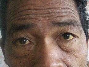 The most common physical indications of cholangiocarcinoma are abnormal liver function tests, jaundice (yellowing of the eyes and skin occurring when bile ducts are blocked by tumor), abdominal pain (30–50%), generalized itching (66%), weight loss (30–50%), fever (up to 20%), and changes in the color of stool or urine.[9][10] To some extent, the symptoms depend upon the location of the tumor: people with cholangiocarcinoma in the extrahepatic bile ducts (outside the liver) are more likely to have jaundice, while those with tumors of the bile ducts within the liver more often have pain without jaundice.[11]
