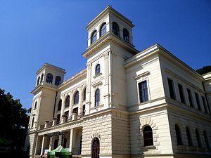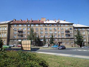 After 1945, the previous population, German by a large majority, was expelled.[4][5] Industrial facilities and large high-rise housing projects were then built to redevelop the area. In the late 1970s an urban settlement was built, linking Chomutov with its neighbouring Jirkov. Following the Velvet Revolution of 1989, the heavy industry significantly decreased its activity, but the environment in and around the town has been visibly improved. The leisure facilities of the area were emphasised, notably the Alum lake, the Chomutov Zoo,[6] and the Bezruč Valley recreational area.
