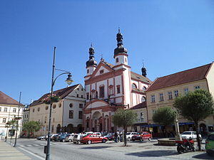 At the end of the south side there is the Baroque church of St. Ignatz with two towers on the north frontage. The church was built for Jesuits by Carlo Lurago between 1663 and 1671. The building called Špejchar from the 17th century was used by Jesuits as earlier church and it adjoins the east side of the church of St. Ignatz. Nowadays it is used as a gallery.