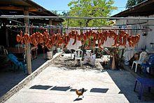 Chorizo (/tʃəˈriːzoʊ, -soʊ/,[2][3] from Spanish [tʃoˈɾiθo]) or chouriço (from Portuguese [ʃo(w)ˈɾisu]) is a type of pork sausage.