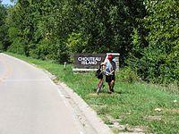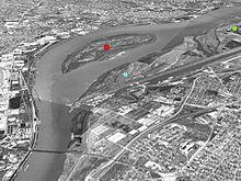 Chouteau Island (/ʃoʊˈtoʊ/ shoh-TOH), situated approximately eight miles (13 km) due north of the Gateway Arch in St. Louis, Missouri, and approximately one mile (1.6 km) south of the confluence of the Missouri River and Mississippi River, is one of a cluster of three islands: Chouteau Island, Gabaret Island, and Mosenthein Island.[1] The three, with a combined area of approximately 5,500 acres (20 km2), are located in Madison County, Illinois. The three-island complex is also referred to as "Chouteau Island".[1] The island is manmade, having been created during the construction of the Chain of Rocks Canal between 1946 and 1953. Most of Chouteau Island lies in Chouteau Township, but its southern quarter lies in Venice Township, both in Madison County. Gabaret Island and Mosenthein Island both lie entirely in Venice Township.